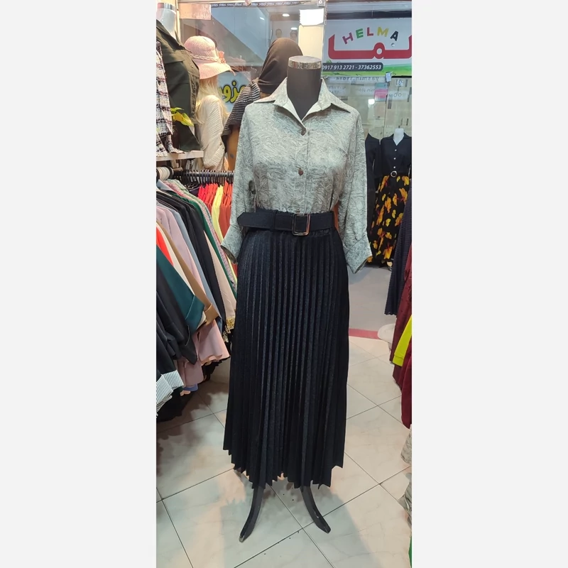 دامن تمام کلوش پلیسه حریر با استر پاناما